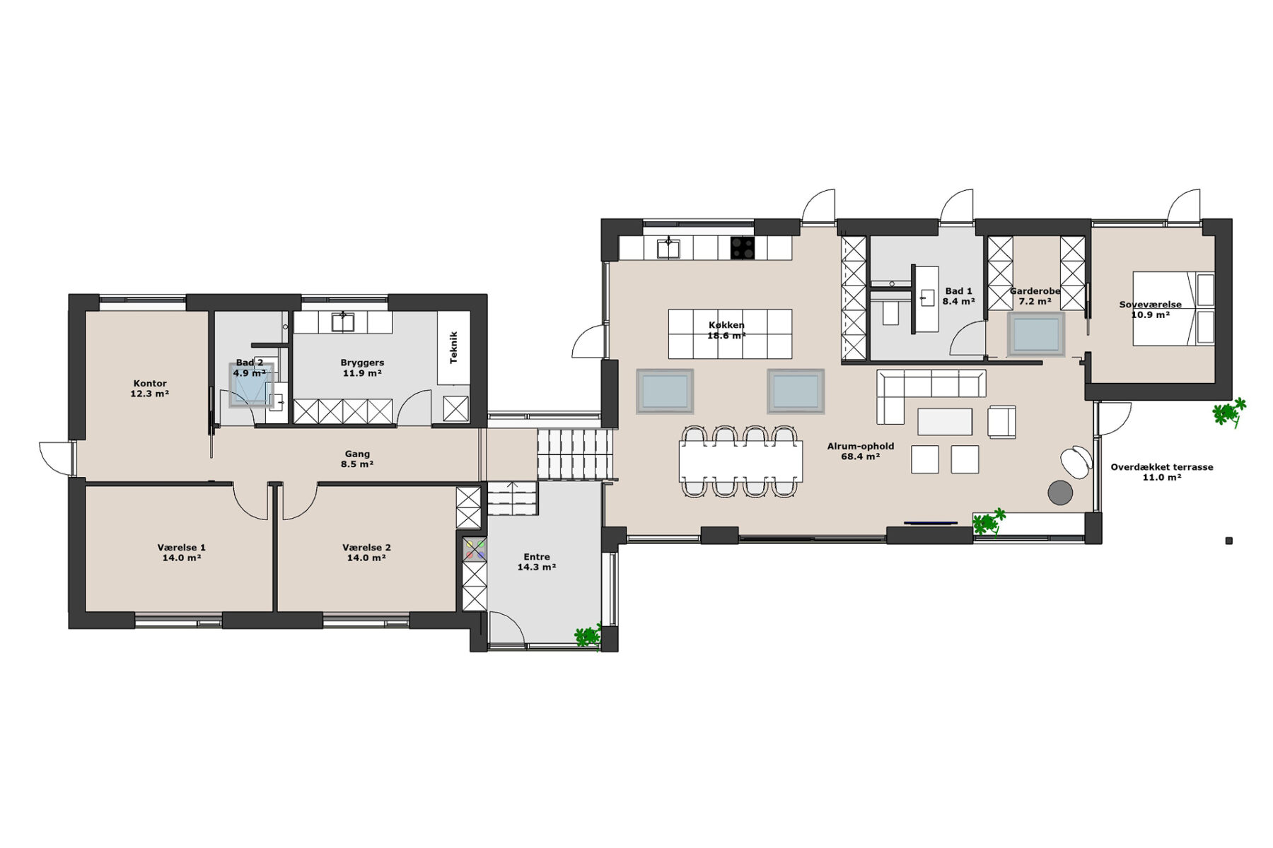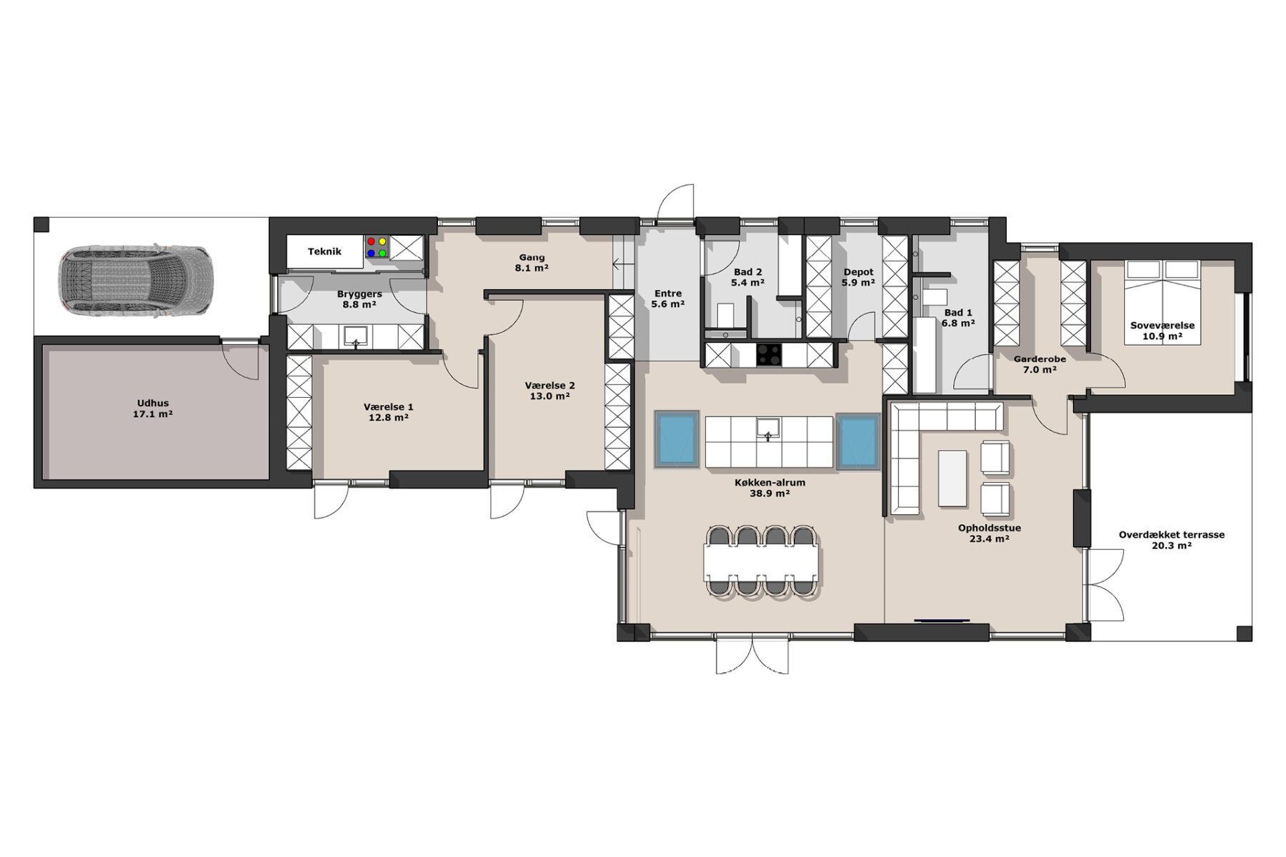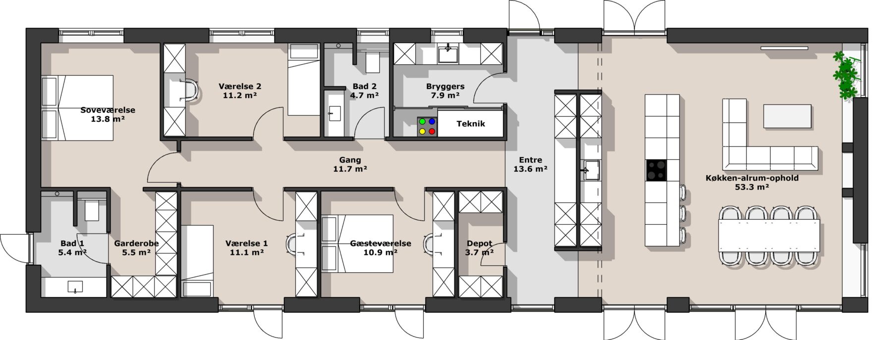 1-planshus er tidløst og funktionelt og passer perfekt til den moderne livsstil, hvor komfort og æstetik går hånd i hånd. Skal hverdagen være let og ligetil? Så skal I overveje et 1-planshus.