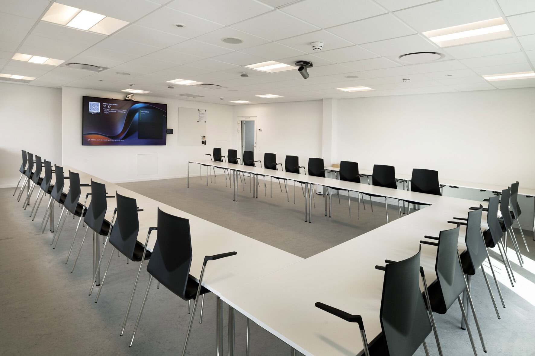 Den nye tilbygning består af kontorer, mødelokaler, toiletter og arbejdslokaler.