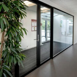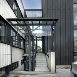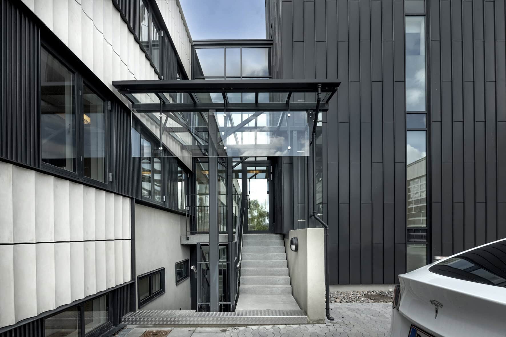 Selve renoveringen af den eksisterende kontorbygning har blandt andet omfattet, at de gamle betonforplader på facaderne og tagkonstruktionen er blevet revet ned. Efterfølgende er den nye klimaskærm blevet bygget op med et Hilti-facadesystem og afsluttet med fiberbetonplader, der går igen på den nye tilbygning, så der bliver skabt en stilren sammenhæng.