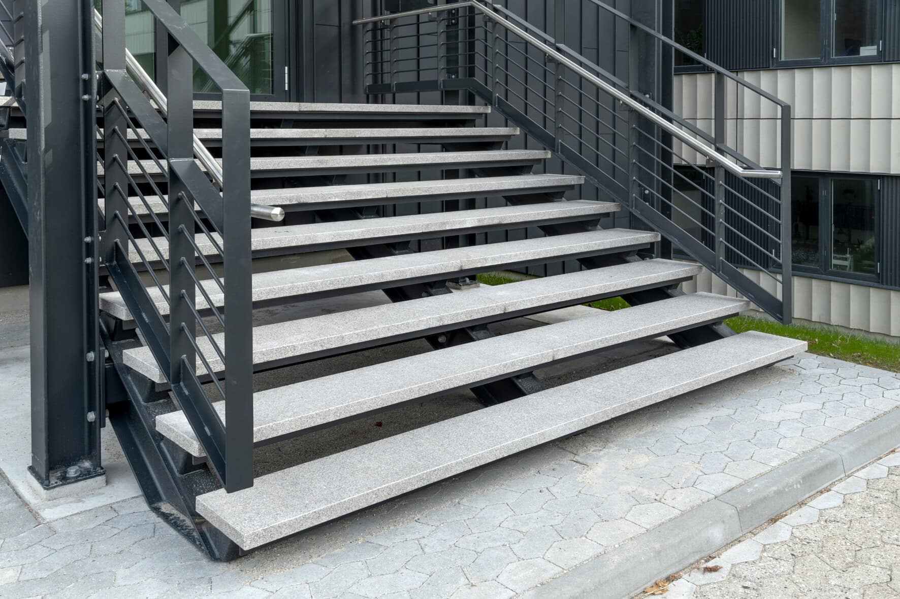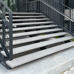 Der er kommet ny bag- og hovedtrappe. Hovedtrappen er en ståltrappe med granitsten som trin.